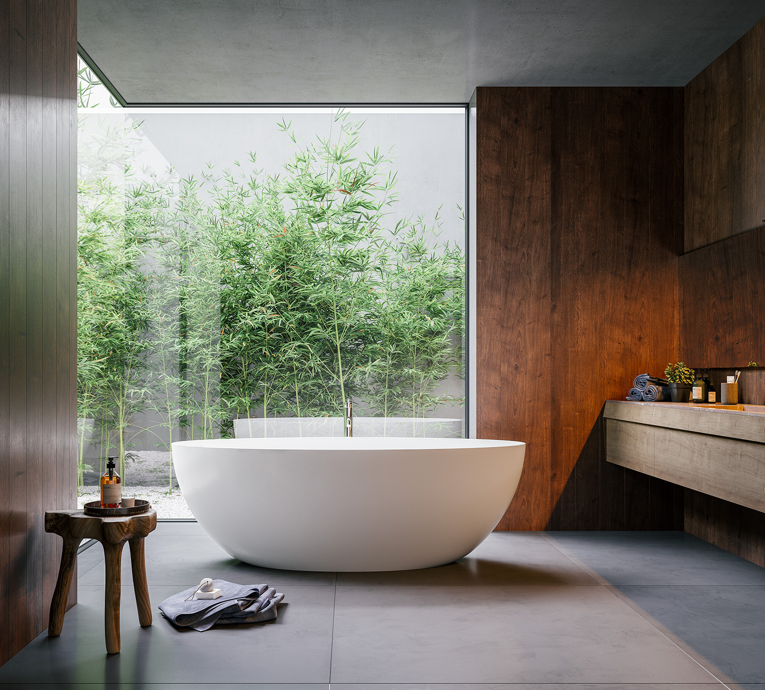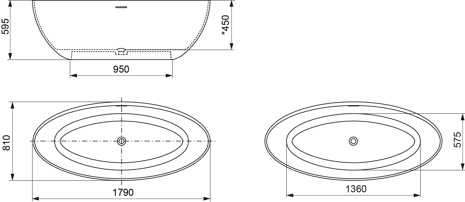 Badewanne aus Hardlite, Wandversion mit integriertem Überlauf. Click Clack Ablaufgarnitur DN 40. Ablaufdeckel Weiss matt. Innentiefe 45 cm.
