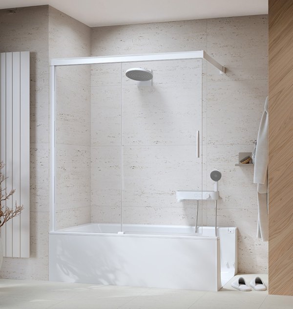 Die JOICE Walk-In-Dusche wird aus hochwertigen Materialien gefertigt und ist in verschiedenen Designs und Stilen erhältlich, um sich nahtlos in jedes Badezimmer einzufügen. Mit Ihrer eleganten Ästhetik und ihrer funktionalen Gestaltung ist die JOICE Walk-In-Dusche eine ideale Wahl für diejenigen, die eine zeitgemässes und komfortables Duscherlebnis suchen. Aber das ist noch nicht alles, mit nur wenigen Handgriffen wird sie zur vollwertigen Badewanne! CHF 4954.- für Wanne 1500 x 850 mm oder 1600 x 850 mm, Duschaufsatz und Schürze oder Fliesenträger, inkl. Lieferung und MWST. Exkl. optionales Zubehör wie Aufbewahrungsbox oder Textiltasche für Schott, Flexibler Anschluss-Schlauch 1/2″, Wannendichtband und Unterbauelement. Montage durch Sanitärinstallateur. Weitere Informationen