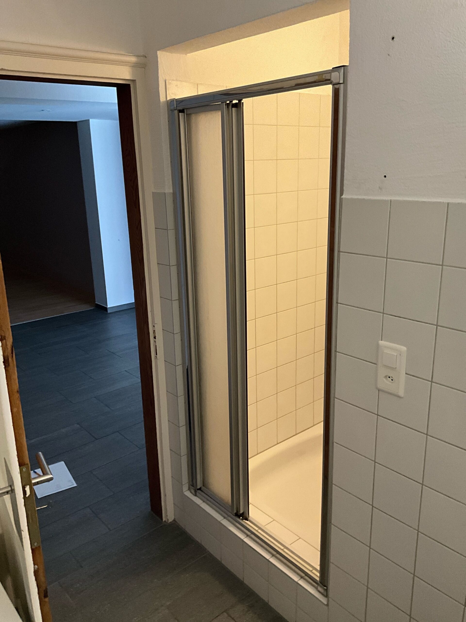 Bestehende Schiebetür durch neue Pendeltür ersetzt.